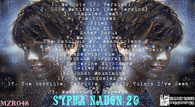 Mauve Zone Recordings is pleased to announce our 48th release, 20 by Sypha Nadon. A compilation album assembled to celebrate the 20 year anniversary of the foundation of the Sypha Nadon sound, it collects material from close to a 20 year period and includes at least one track from almost every major SN album (with a few exceptions). Also included in the liner notes, for the first time, is a chronological discography listing all of the band's major LPs, EPs, anthologies, and compilation appearances (I hope to do a more detailed discography in the future, but for now this basic one will suffice).